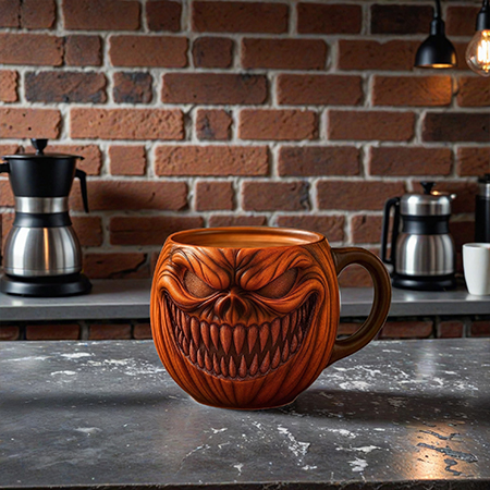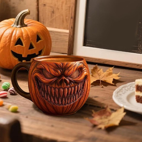 And all around me, glowing jack-o'-lanterns set the mood—just like the wicked grin on this unique mug that now lights up my own Halloween rituals.